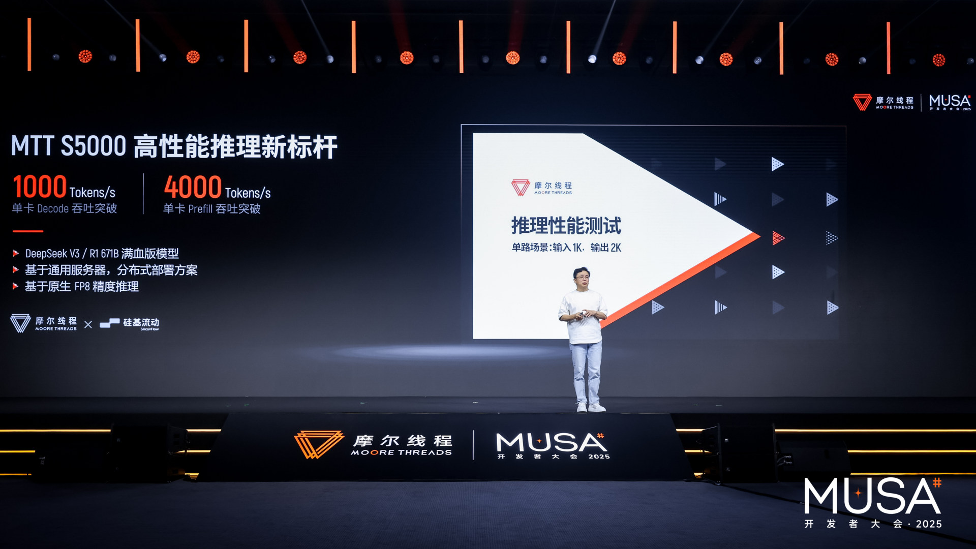 摩尔线程联合硅基流动,在DeepSeek R1 671B全量模型上实现性能突破,MTT S5000单卡Prefill吞吐突破4000 tokens/s、Decode吞吐突破1000 tokens/s,树立国产推理性能新标杆。