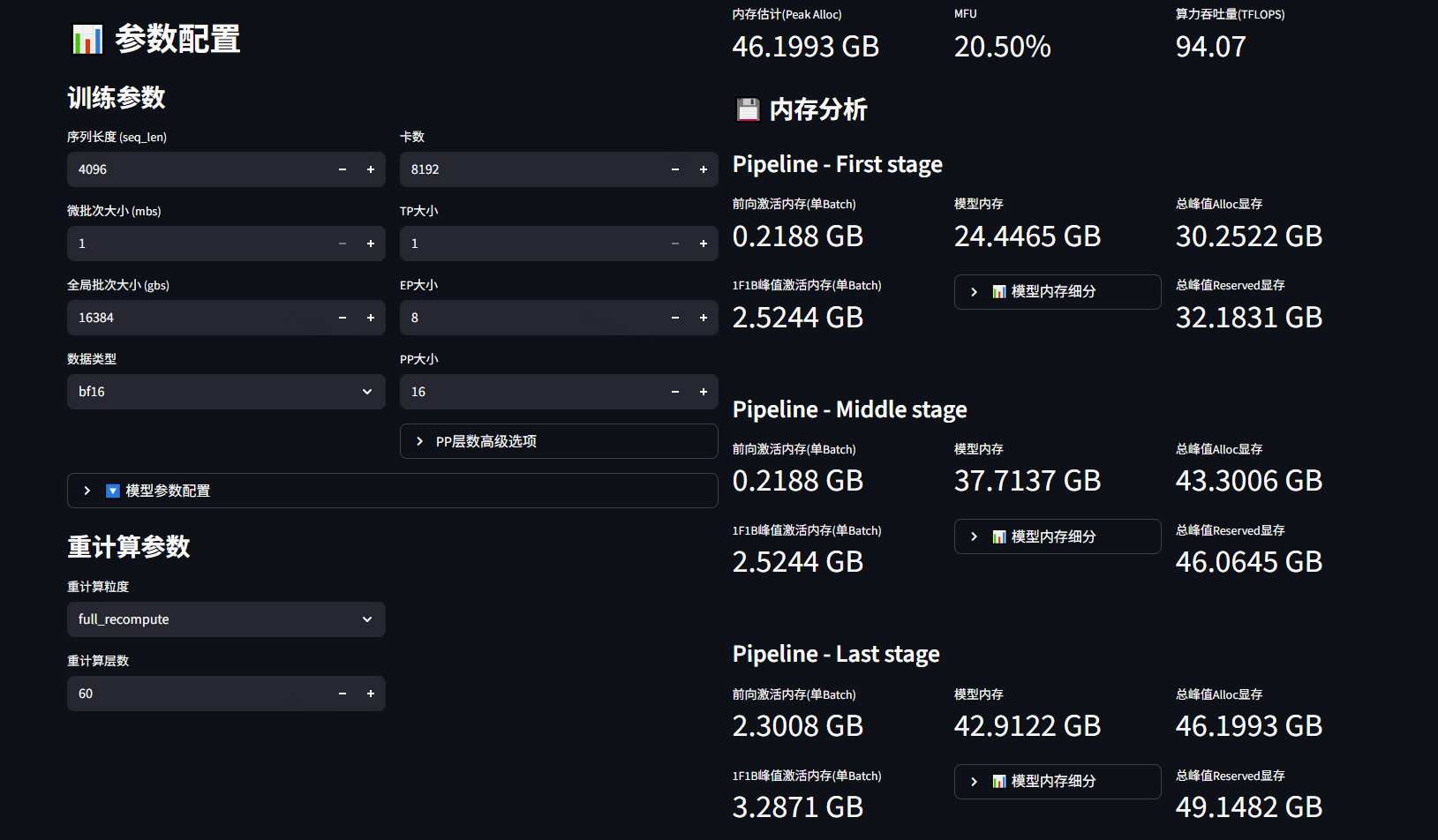 SimuMax v1.1引入了直观的可视化配置界面。用户通过简单交互,即可快速完成从单卡到万卡集群的训练任务定义,极大简化工作流,使工程师更专注于训练策略设计与深层性能优化,提升模型研发与调优效率。